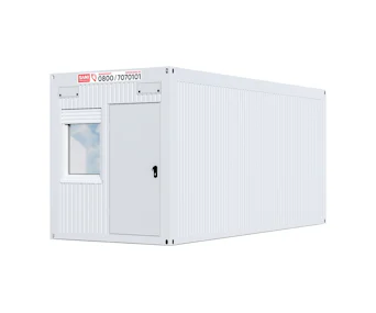 Der SANI Raumcontainer 20ft steht online zur Miete bereit. Du hast Anspruch auf alle Serviceleistungen des Anbieters. Der Raumcontainer 20ft ohne Flur kommt überall dort zum Einsatz, wo kurzfristig und temporär mehr Raum benötigt wird. Zur Ausstattung gehören eine Tür und ein Fenster, eine Heizung mit 2,5 kW, die Beleuchtung und ein Anschluss für Strom (32 A CEE). Je nach Bedarf kann eine Möblierung ausgewählt und angemietet werden.